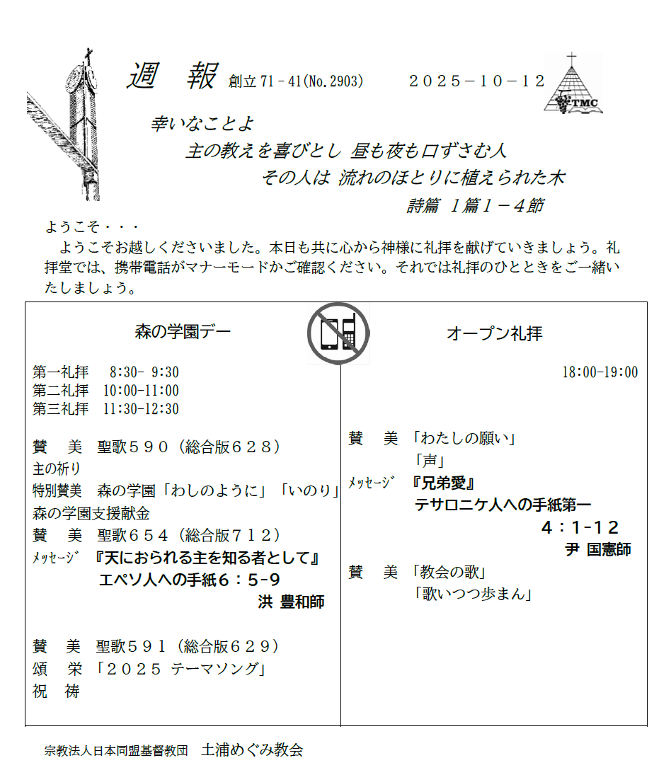 10月12日(日)礼拝のご案内