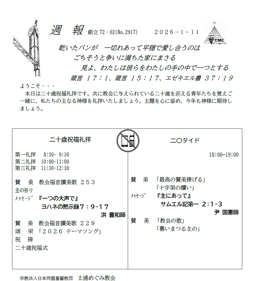 1月11日(日)礼拝のご案内