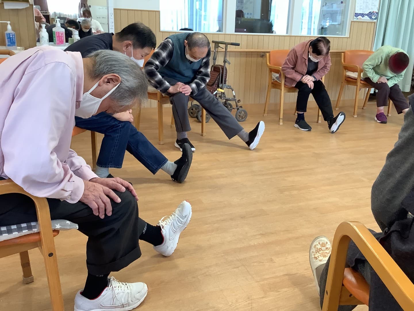 日常生活動作を楽に行なうことが出来るように、全身のストレッチ運動や筋力トレーニングなどの体操を皆さんで行います。頭の体操にもなる運動や、美味しくご飯を食べるためのお口周りの体操なども行っています。