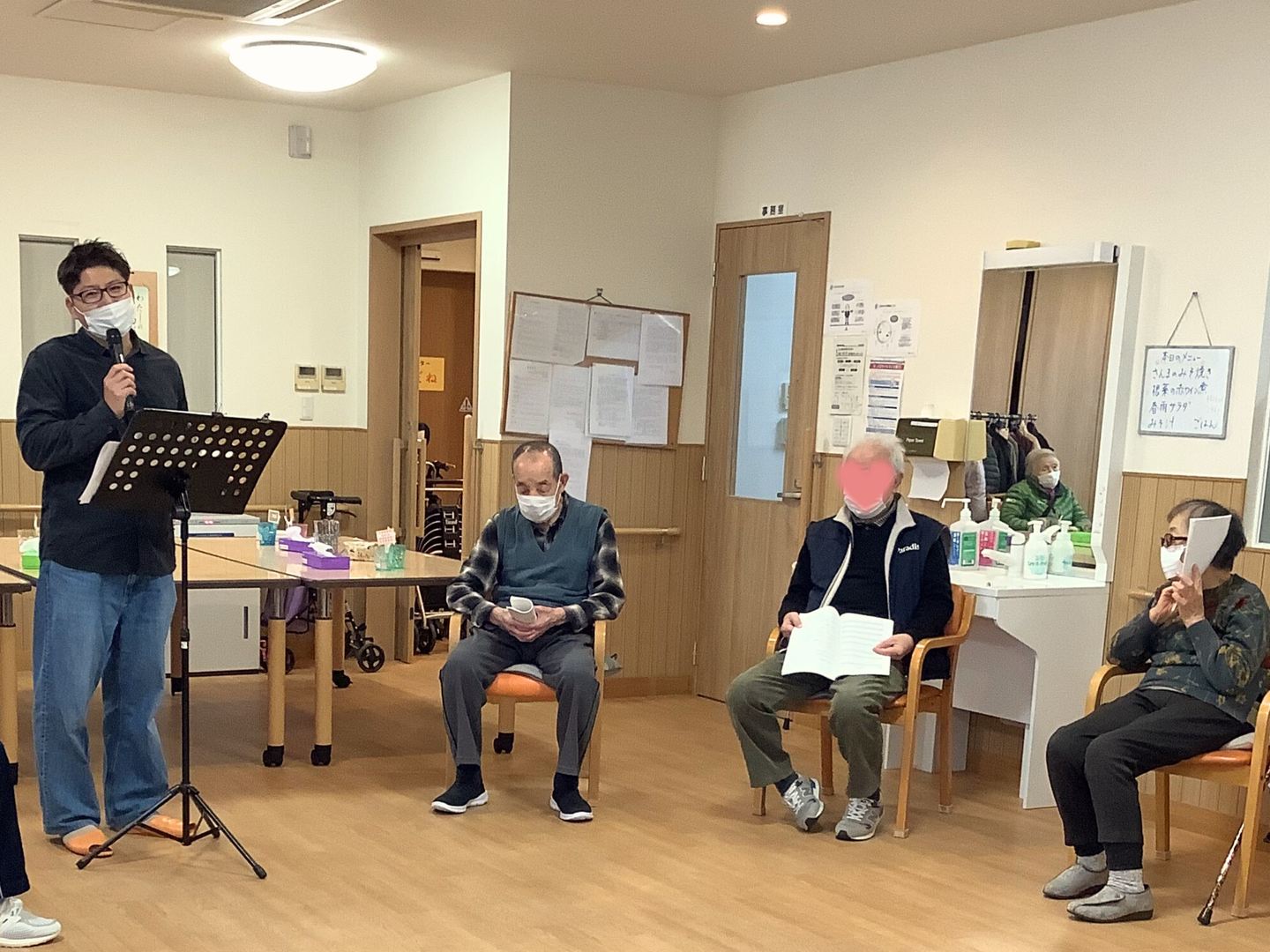 ピアノの伴奏に合わせて、懐かしい童謡や歌謡曲などを歌います。歌を歌うことは、口腔機能の維持・向上、認知機能への良い効果、ストレス解消や気分が明るくなるなどの効果があります。