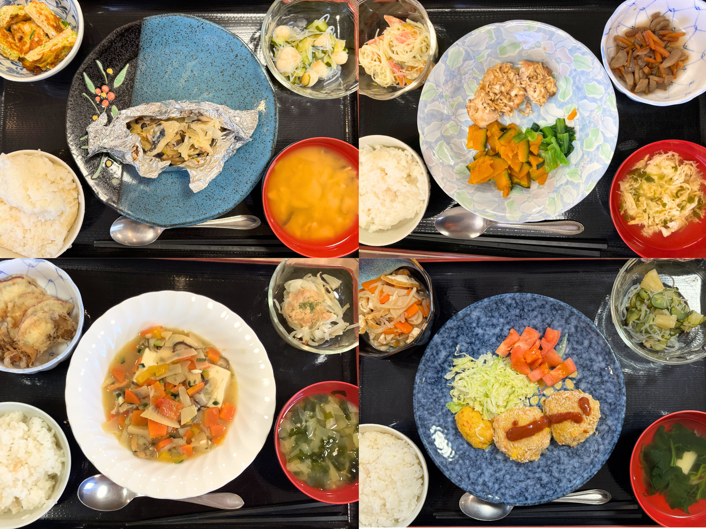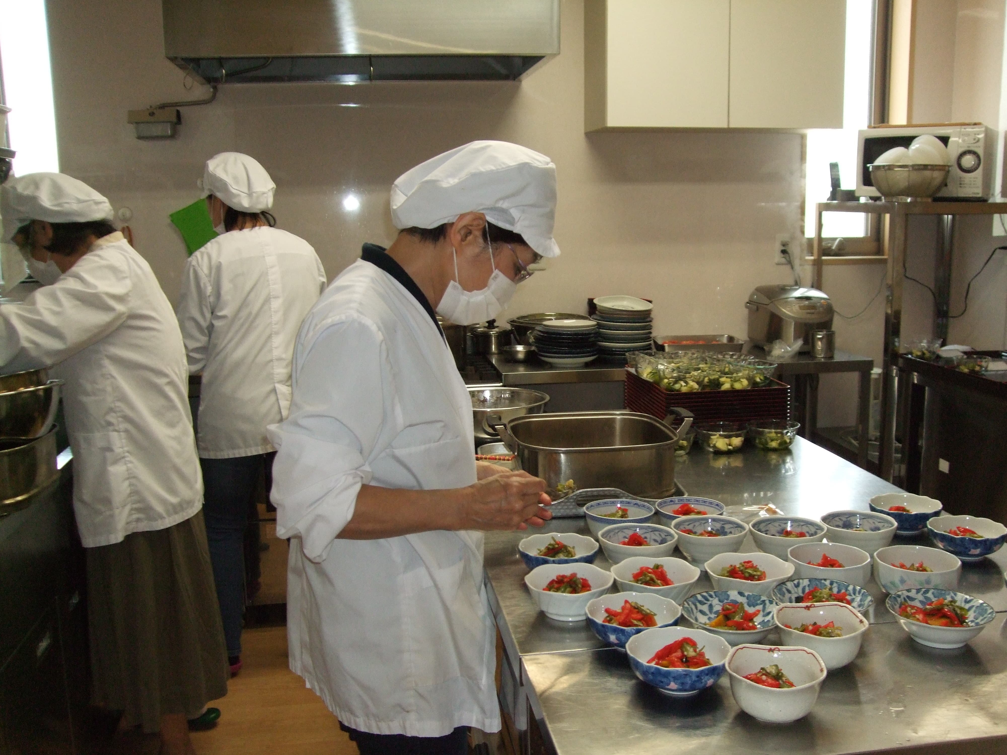 お食事は栄養バランスを考慮したメニューです。温かい手作りの食事をどうぞ!お身体の状態に合わせて、使い易い食器もご用意しています。テーブルを囲んで、楽しく美味しく昼食タイムを過ごしましょう。