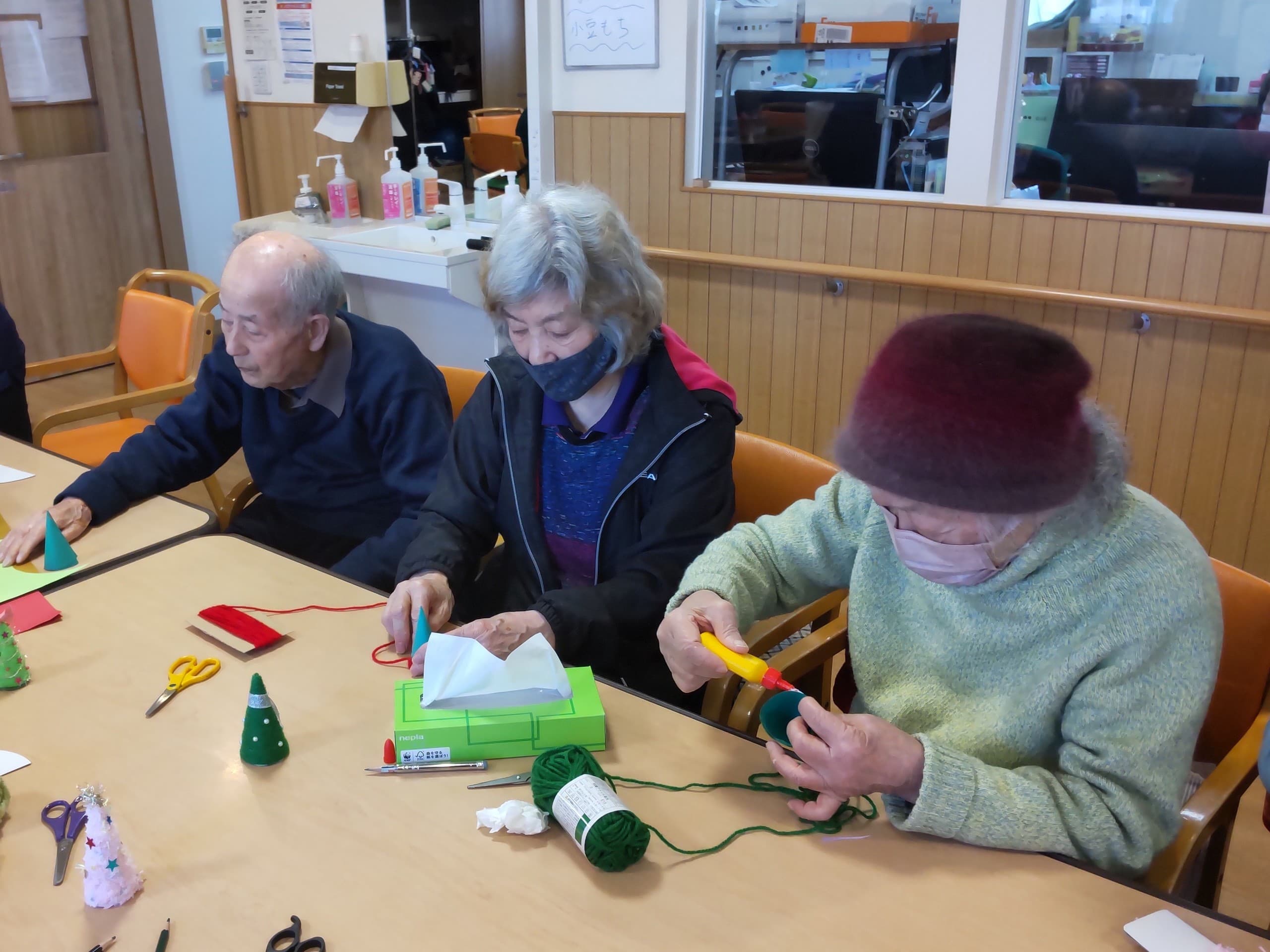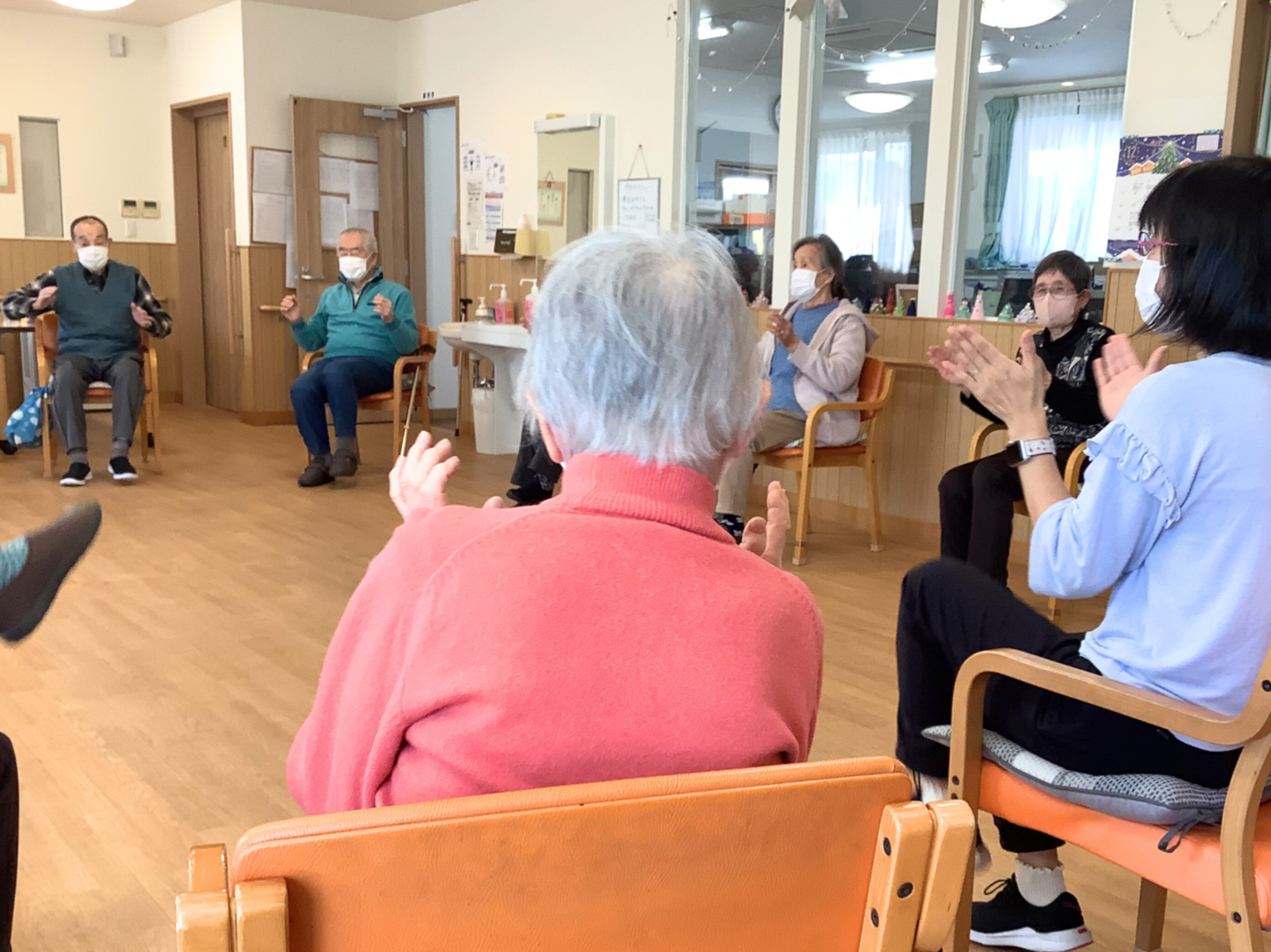 散歩、トランプ、工作、映画鑑賞、各種ゲームなど、お一人おひとりがやりたいことに合わせてレクを行い、充実した時間を過ごします。時にはボランティアさんによる楽器演奏や体操があります。季節に合わせて、夏祭りやクリスマスなどの行事も行います。調理レク(昼食作りやおやつ作り)では皆で楽しく調理を行っています。同じ敷地内にあるマナ愛児園(幼稚園)や森の学園(小中学生のフリースクール)の子どもたちとの交流があり、子どもたちが歌を聴かせてくれたり、子どもたちとの一緒にゲームを行なったり、笑顔あふれる時間となっています。また、ご利用者様の「~したい、~へ行きたい」という声をお聞きして、近辺の博物館見学や公園散策、お花見や紅葉狩りなどの屋外レクリエーションも行っています。