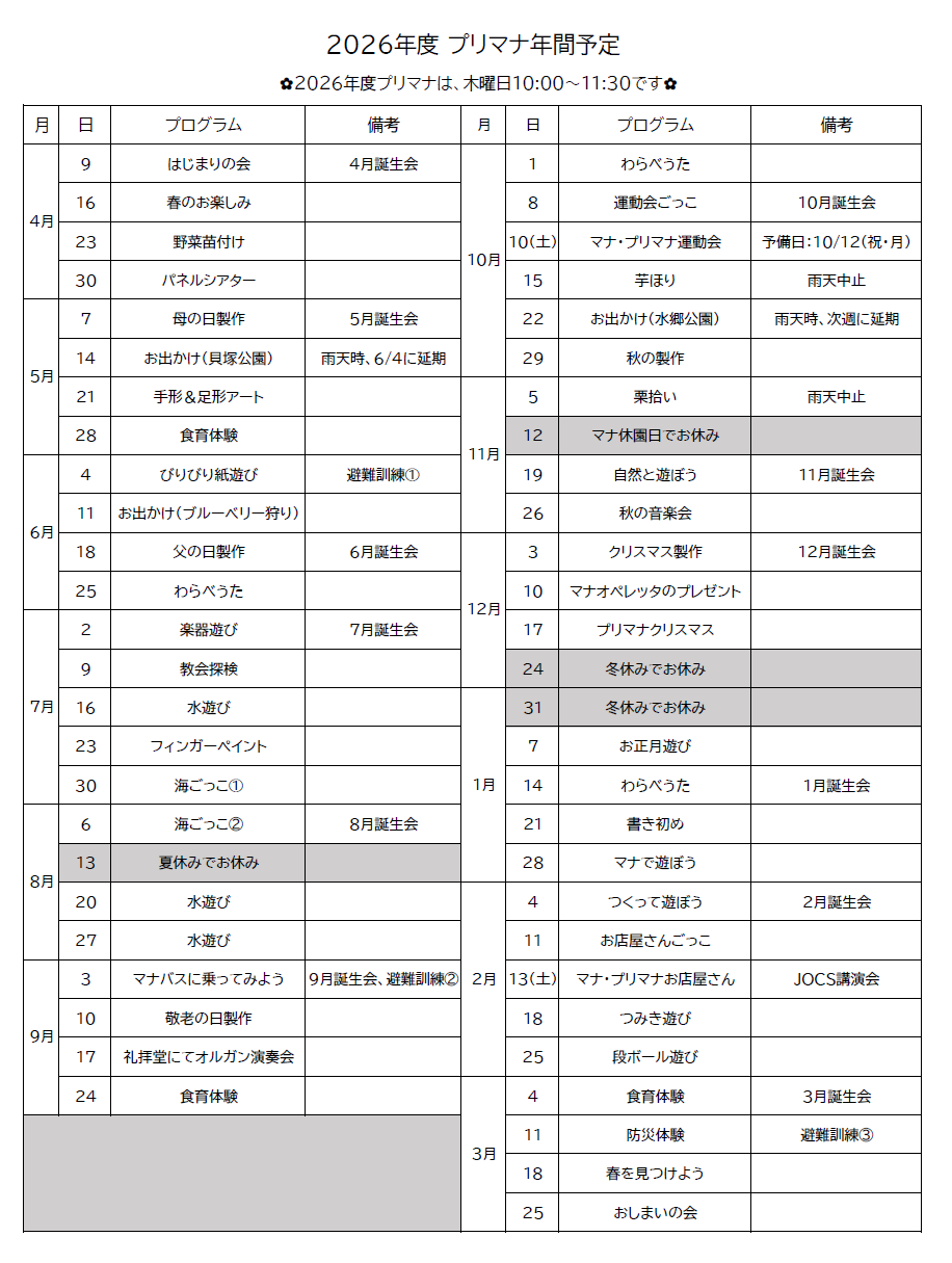 土浦めぐみ教会付属 マナ愛児園 プリマナ