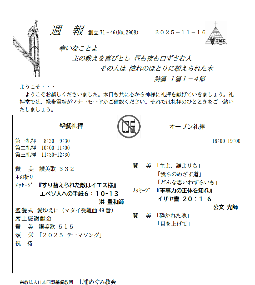 ※ライブ配信開始時間前は、前の礼拝の保存動画のみ表示されます。配信開始時間になりましたらライブ動画の視聴が可能になりますので、お待ちください。