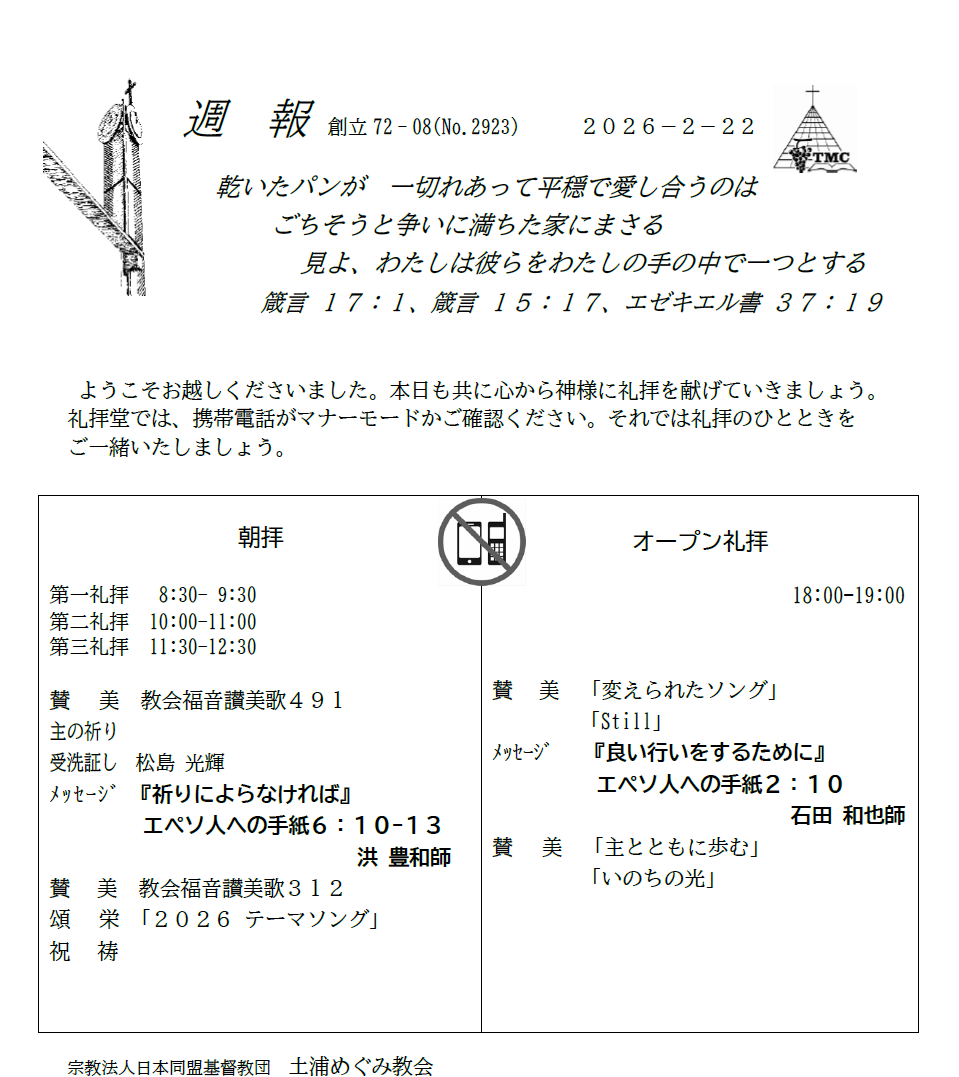 2月22日(日)礼拝のご案内